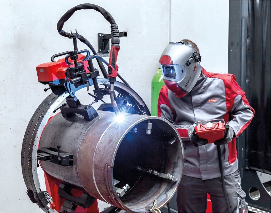 CARRO DE SOLDADURA/ Además de su compacto diseño, el FlexTrack 45 ofrece la mayor flexibilidad posible. Se puede elegir entre 3 tipos de raíles, en función de la aplicación. Especialmente para industrias donde la geometría de superficie es muy amplia, por ejemplo en la construcción naval o industrias caldereras, el FlexTrack 45 es ideal para cualquier aplicación. El FlexTrack se controla con el mando FRC-45, que presenta diferentes opciones de función y ajuste. Gracias al imán integrado detrás del mando a distancia, éste se sujeta fácilmente al chasis u otras